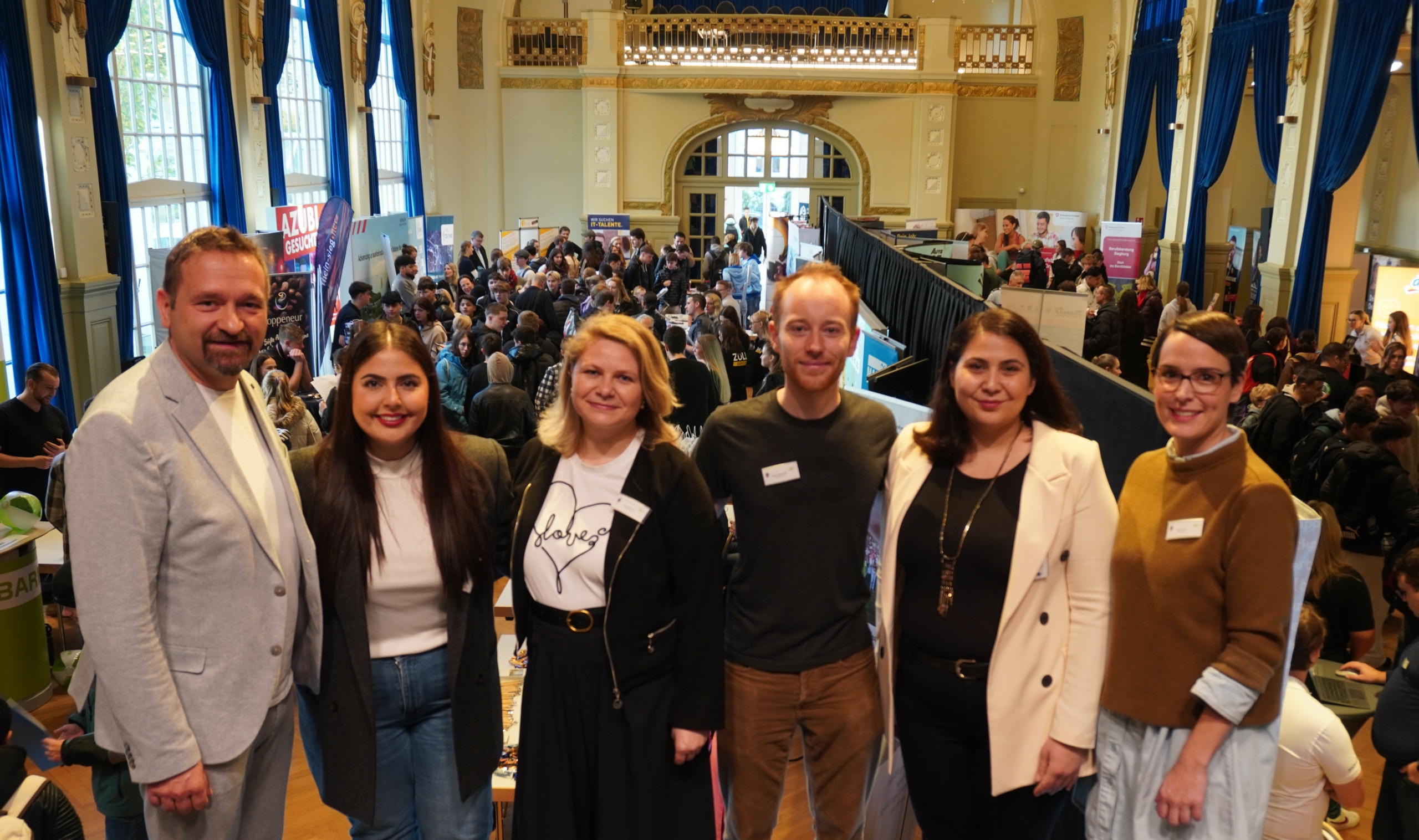 Holger Heuser, Erster Beigeordneter der Stadt Bad Honnef, Busè Özarslan, Inna Nazarenus (beide Jugendamt), Marius Nisslmüller, Vorsitzender Stadtjugendring, sowie Fulya Vatansever und Jenny Fetzer (beide Jugendamt) begrüßten die Schüler:innen im Kurhaus.