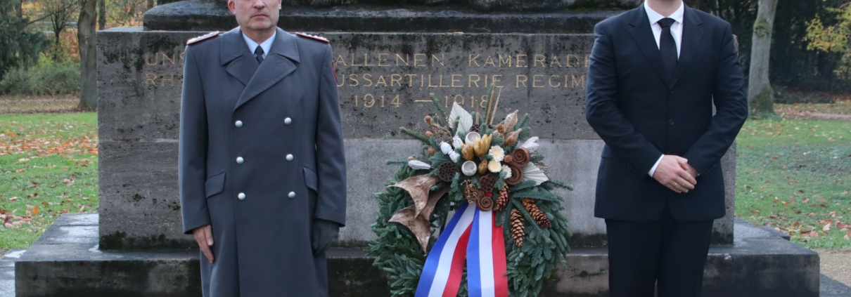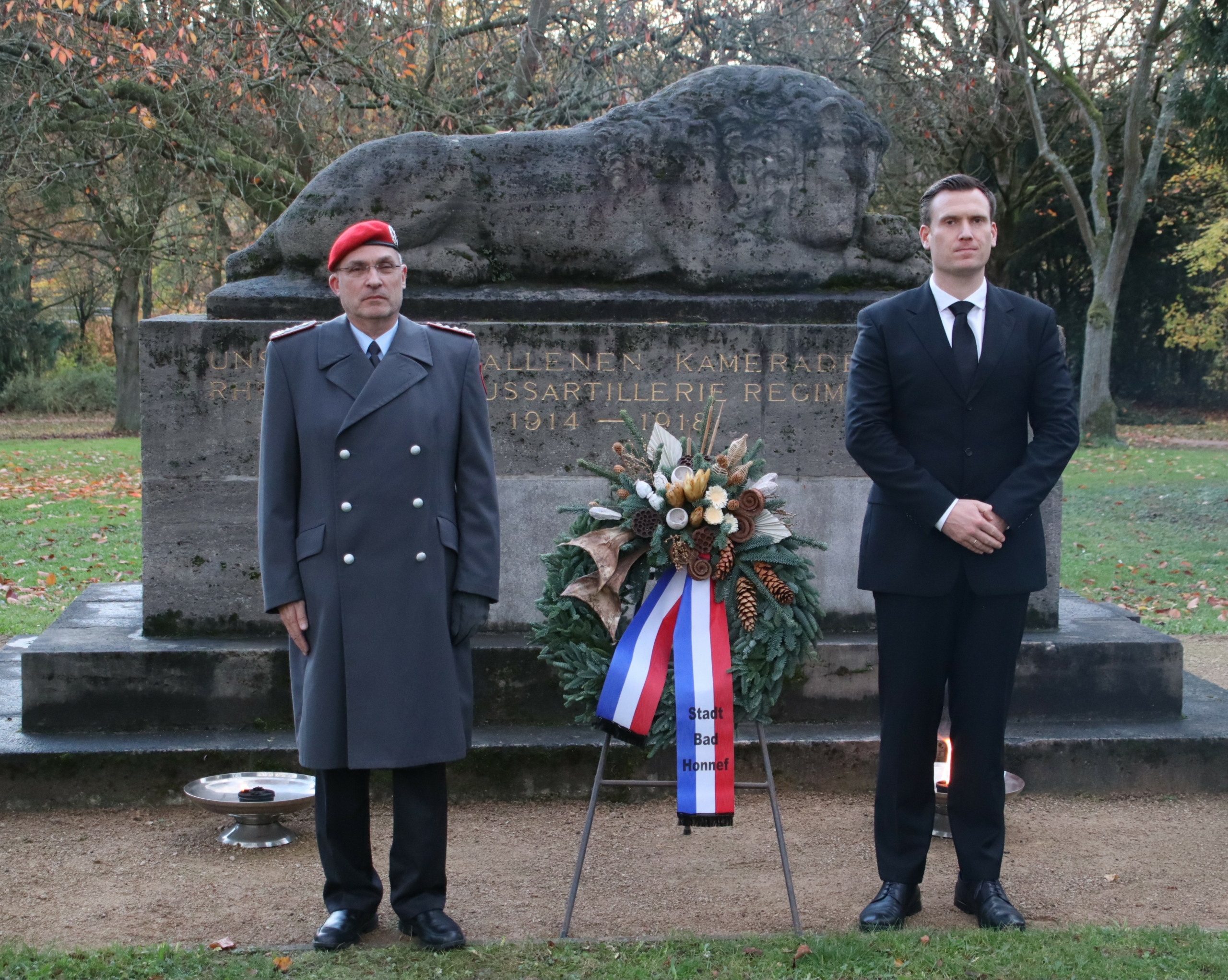 Oberst d. R. Christian Jonnas und Bürgermeister Philipp Herzog sprachen über die Bedeutung des Löwendenkmals für Bad Honnef.